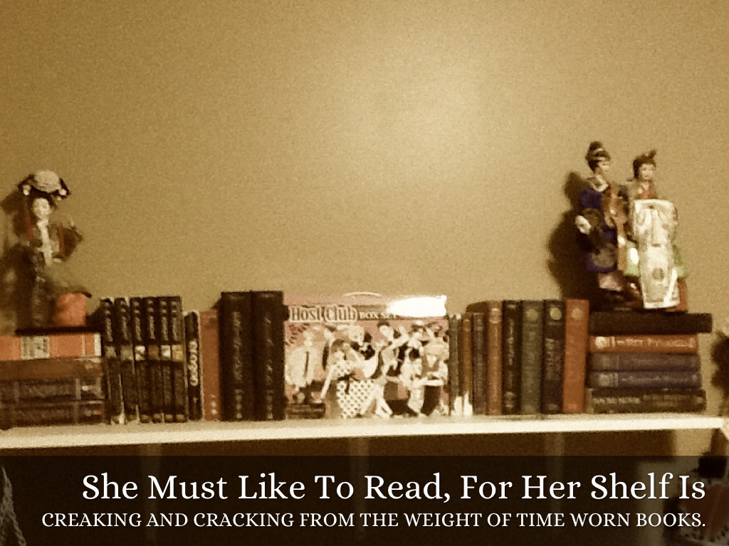 CREAKING AND CRACKING FROM THE WEIGHT OF TIME WORN BOOKS.