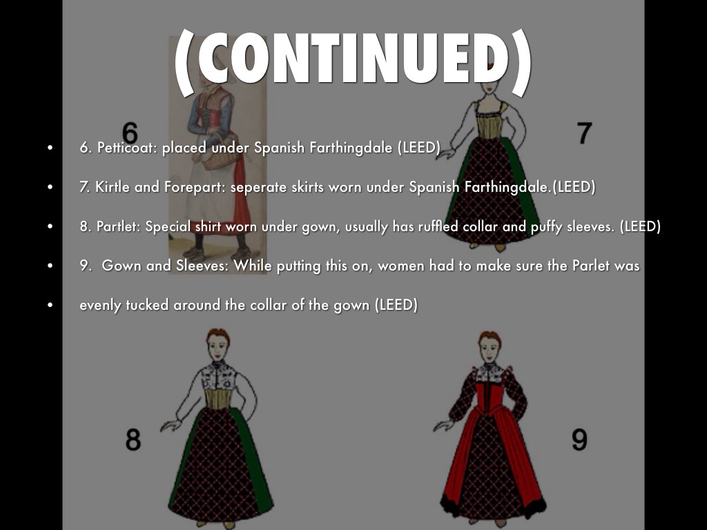 • 6. Petticoat: placed under Spanish Farthingdale (LEED)