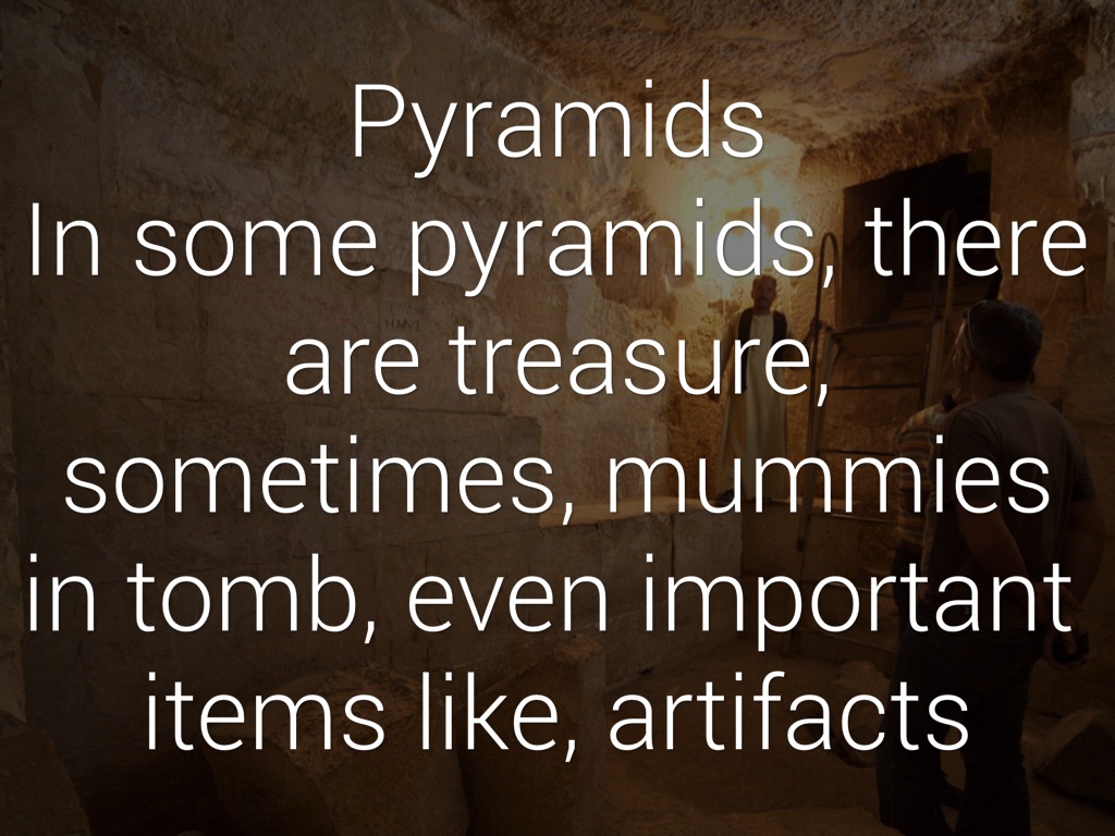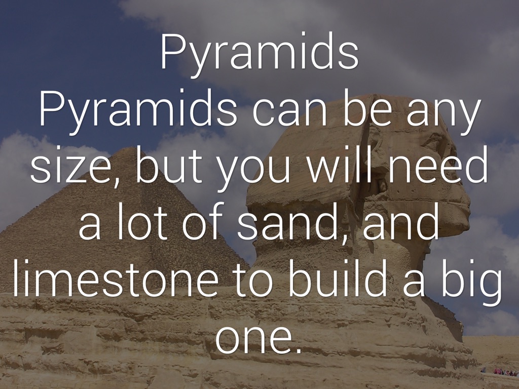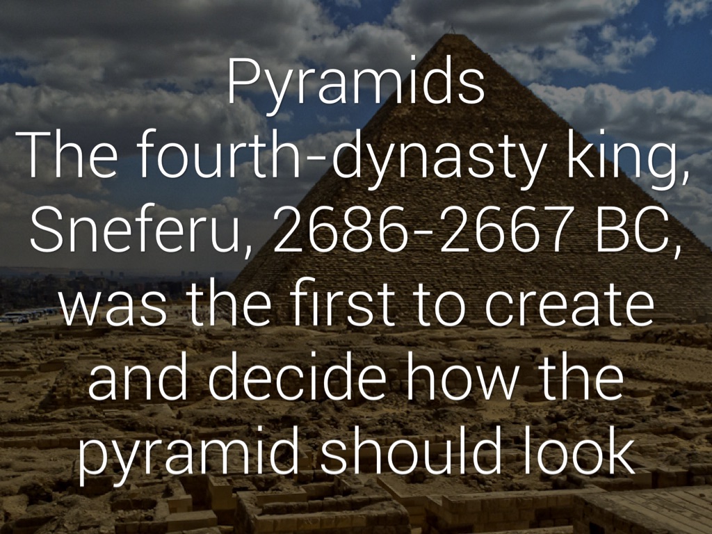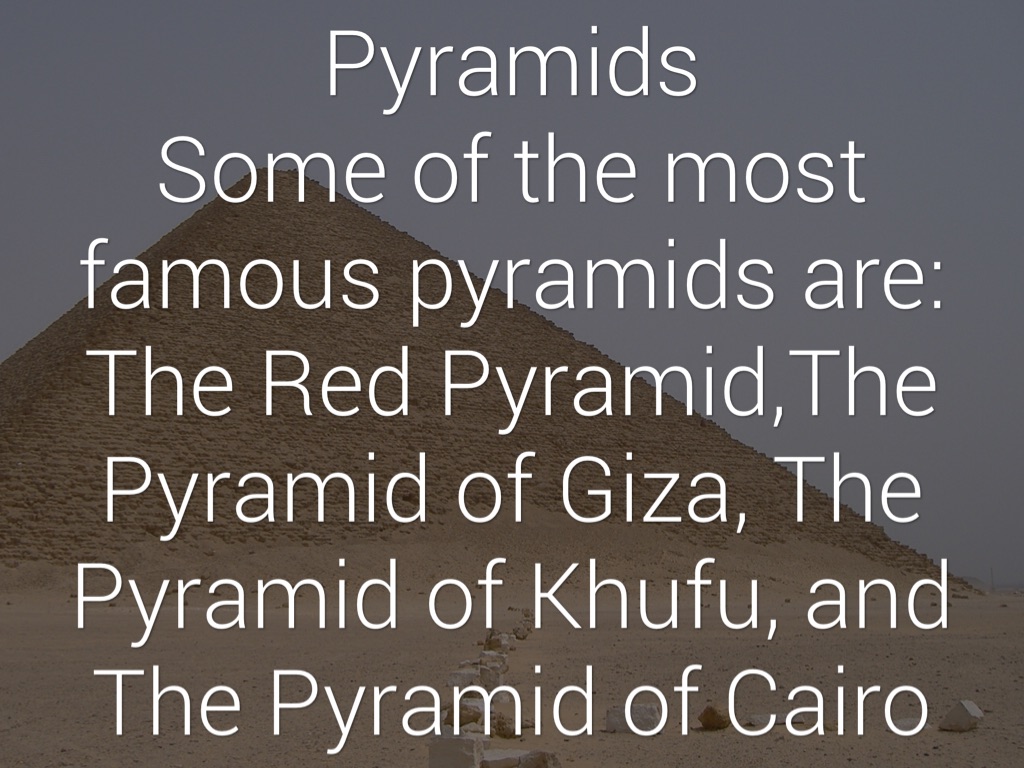 Pyramids Ancient Egyptians made pyramids triangles, because they needed to see where pyramids were from far away, and they would be able to see the tip of the pyramid, since it was a triangle.