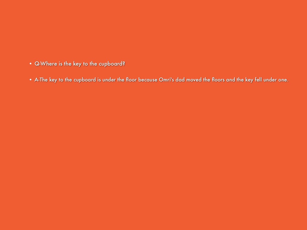 A-The key to the cupboard is under the floor because Omri's dad moved the floors and the key fell under one.