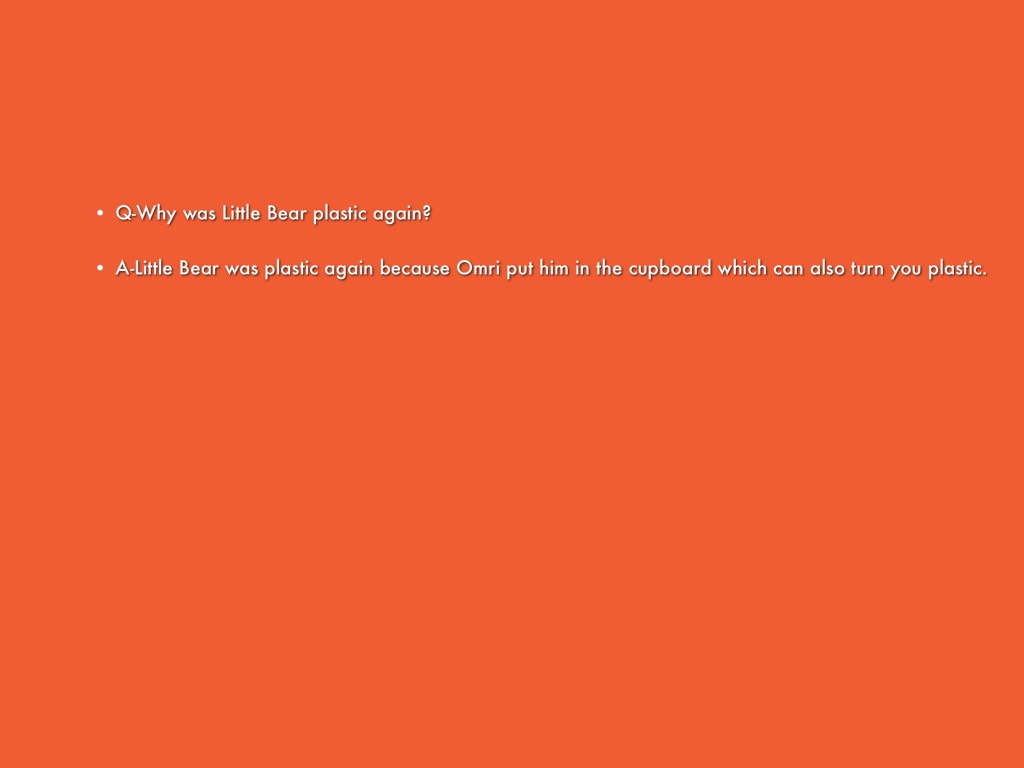 A-Little Bear was plastic again because Omri put him in the cupboard which can also turn you plastic.