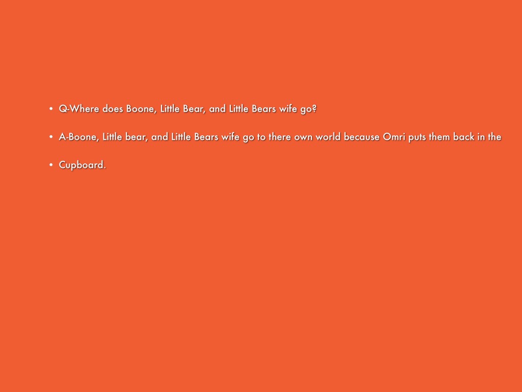 A-Boone, Little bear, and Little Bears wife go to there own world because Omri puts them back in the