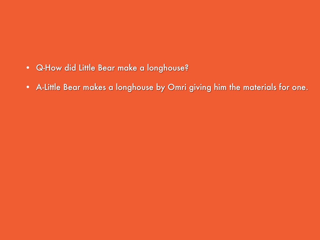 A-Little Bear makes a longhouse by Omri giving him the materials for one.