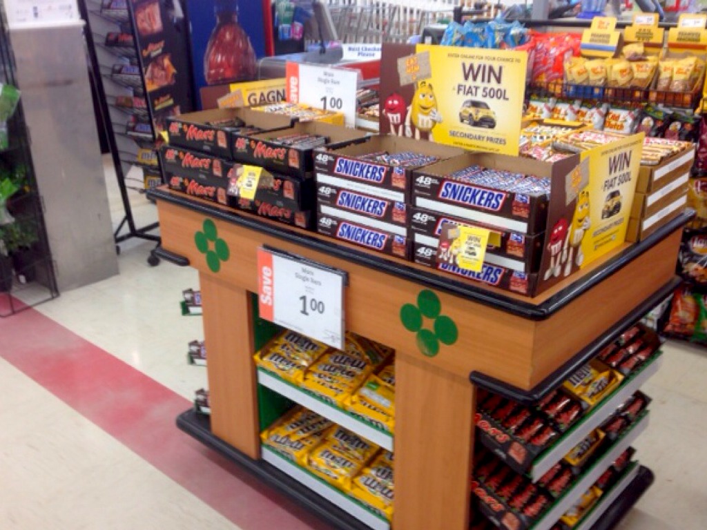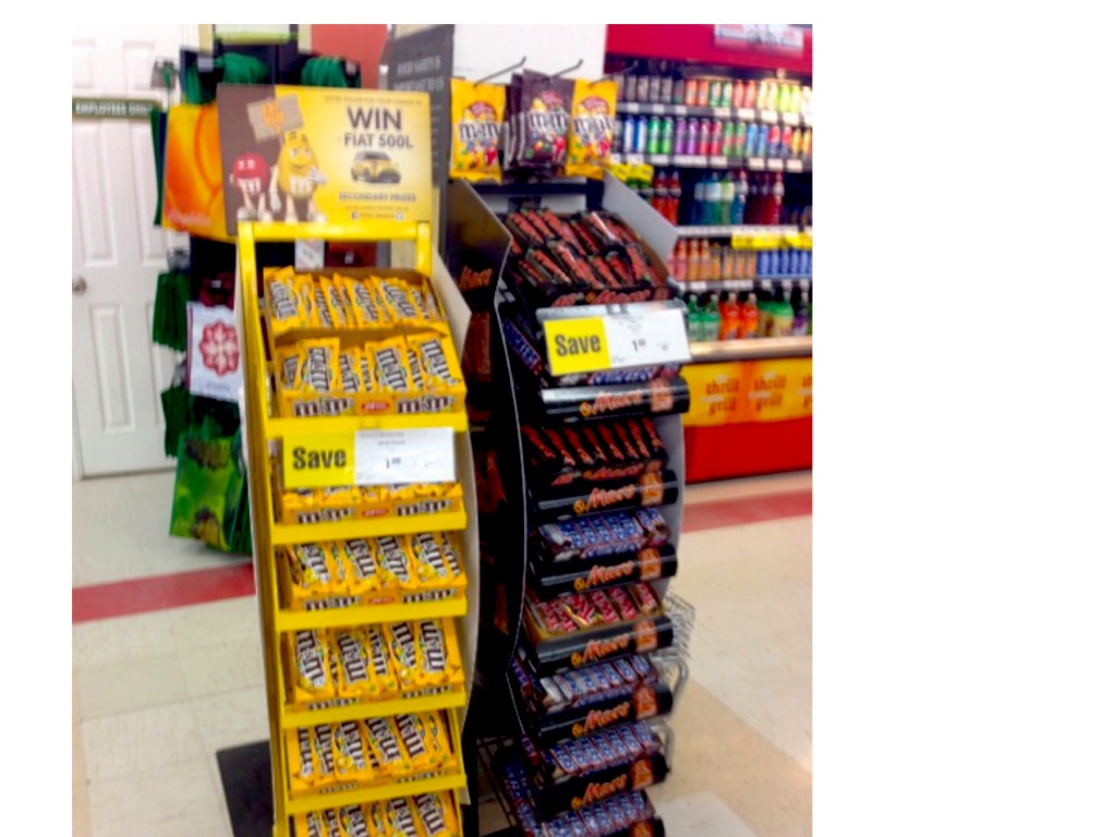 This is the Fiat display that I did at Foodland in Coldbrook, NS. The store was able to sell through over 10,000 bars in a four month period. It was a huge success.