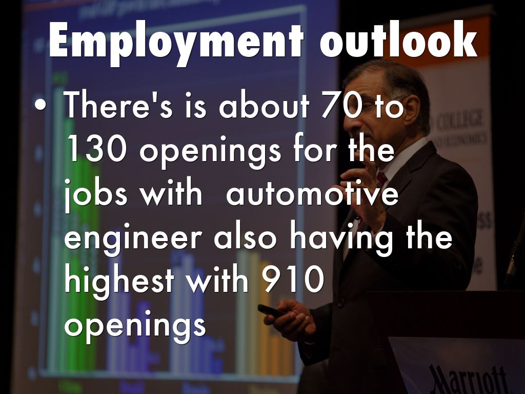 There's is about 70 to 130 openings for the jobs with automotive engineer also having the highest with 910 openings