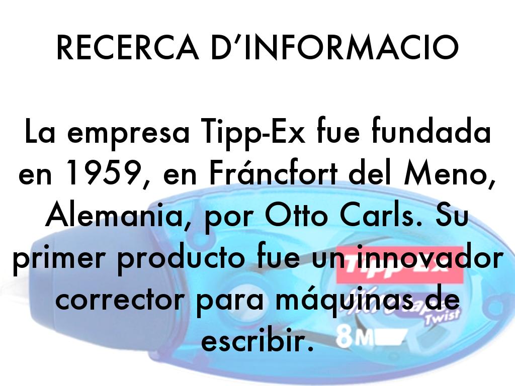 La empresa Tipp-Ex fue fundada en 1959, en Fráncfort del Meno, Alemania, por Otto Carls. Su primer producto fue un innovador corrector para máquinas de escribir.