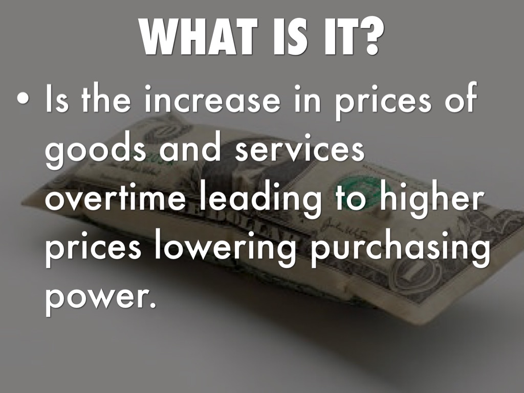 Is the increase in prices of goods and services overtime leading to higher prices lowering purchasing power.