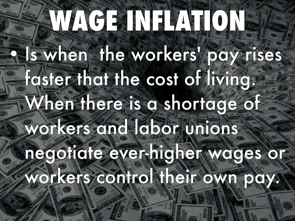 Is when the workers' pay rises faster that the cost of living. When there is a shortage of workers and labor unions negotiate ever-higher wages or workers control their own pay.