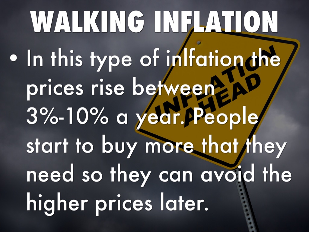 In this type of inlfation the prices rise between 3%-10% a year. People start to buy more that they need so they can avoid the higher prices later.
