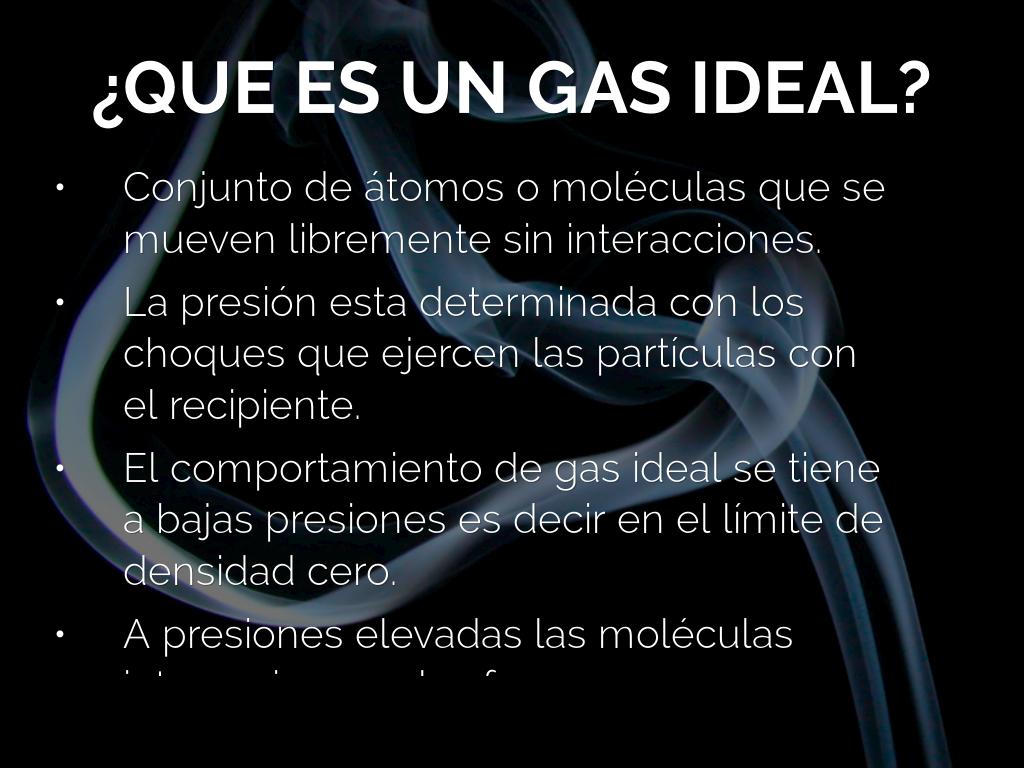 El comportamiento de gas ideal se tiene a bajas presiones es decir en el límite de densidad cero.