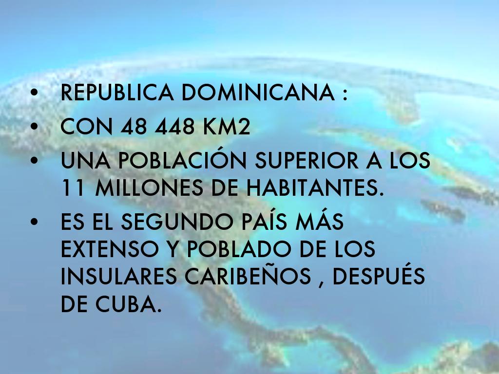 - ES EL SEGUNDO PAÍS MÁS EXTENSO Y POBLADO DE LOS INSULARES CARIBEÑOS , DESPUÉS DE CUBA.