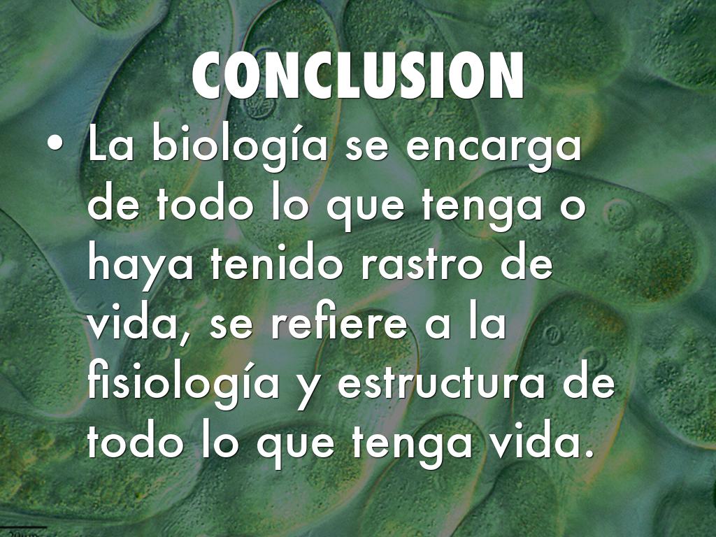 La biología se encarga de todo lo que tenga o haya tenido rastro de vida, se refiere a la fisiología y estructura de todo lo que tenga vida.