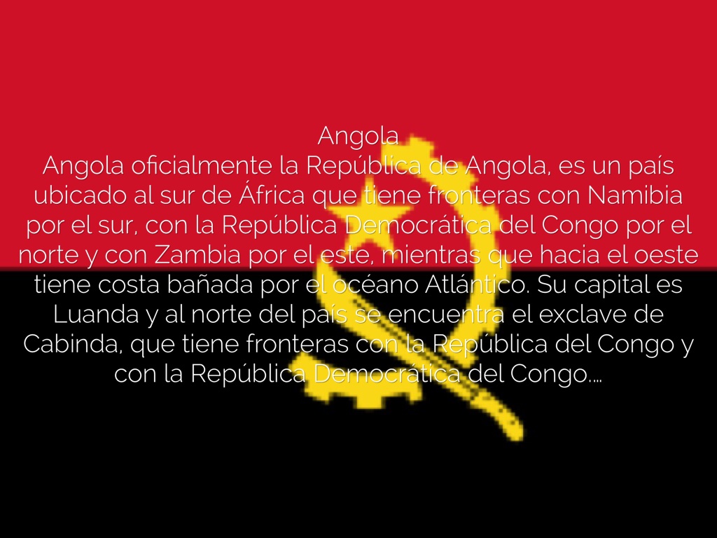 Angola oficialmente la República de Angola, es un país ubicado al sur de África que tiene fronteras con Namibia por el sur, con la República Democrática del Congo por el norte y con Zambia por el este, mientras que hacia el oeste tiene costa bañada por el océano Atlántico. Su capital es Luanda y al norte del país se encuentra el exclave de Cabinda, que tiene fronteras con la República del Congo y con la República Democrática del Congo.