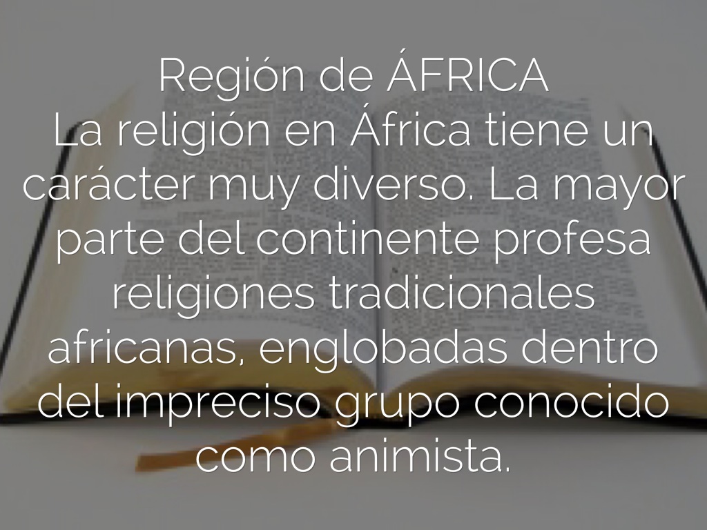 La religión en África tiene un carácter muy diverso. La mayor parte del continente profesa religiones tradicionales africanas, englobadas dentro del impreciso grupo conocido como animista.
