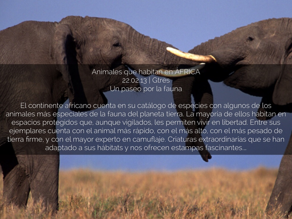 El continente africano cuenta en su catálogo de especies con algunos de los animales más especiales de la fauna del planeta tierra. La mayoría de ellos habitan en espacios protegidos que, aunque vigilados, les permiten vivir en libertad. Entre sus ejemplares cuenta con el animal más rápido, con el más alto, con el más pesado de tierra firme, y con el mayor experto en camuflaje. Criaturas extraordinarias que se han adaptado a sus hábitats y nos ofrecen estampas fascinantes.