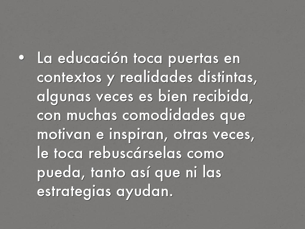 La educación toca puertas en contextos y realidades distintas, algunas veces es bien recibida, con muchas comodidades que motivan e inspiran, otras veces, le toca rebuscárselas como pueda, tanto así que ni las estrategias ayudan.