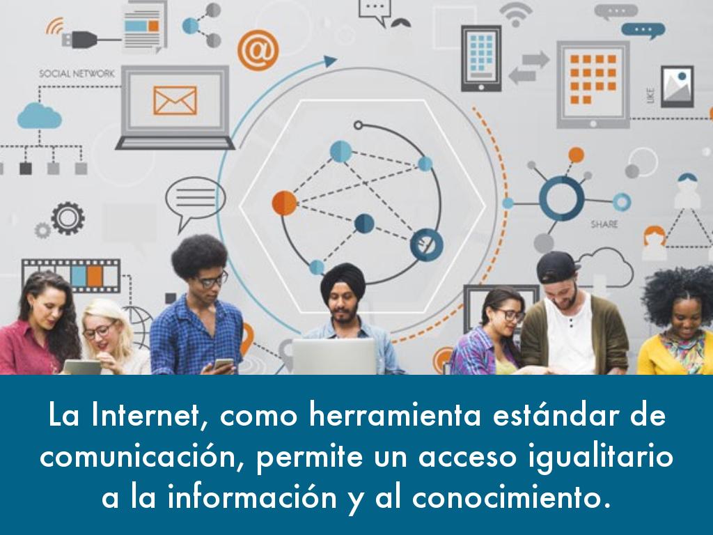 La Internet, como herramienta estándar de comunicación, permite un acceso igualitario a la información y al conocimiento.