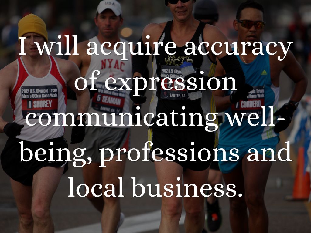 I will acquire accuracy of expression communicating well-being, professions and local business.