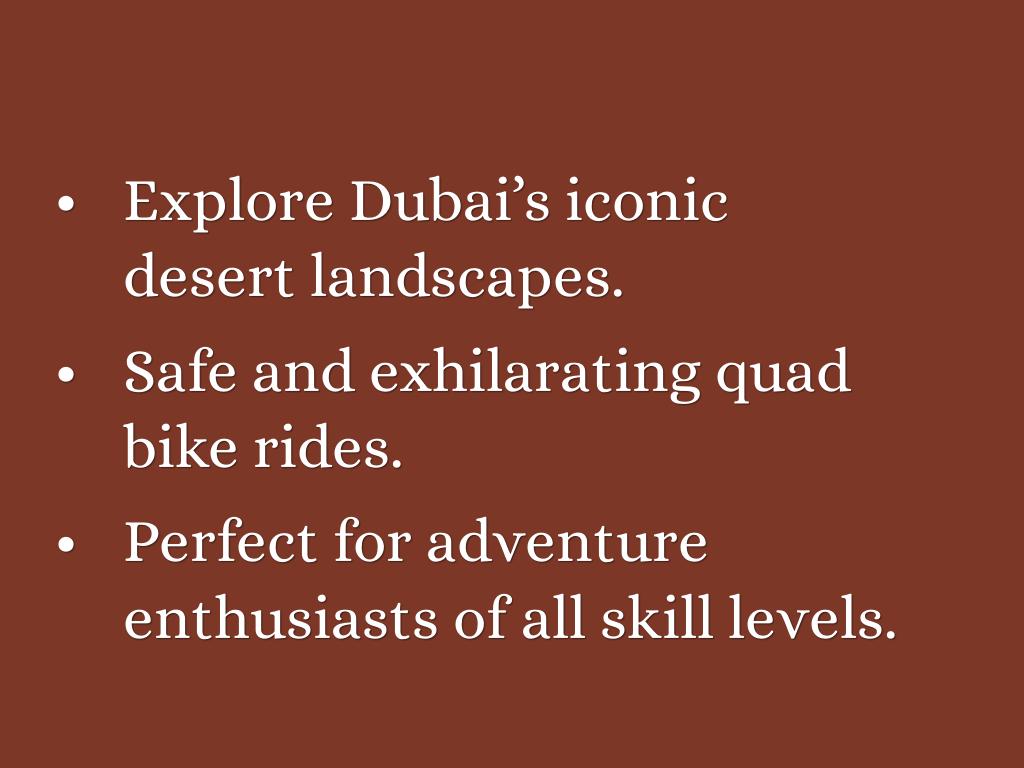 Embark on an unforgettable journey across Dubai's stunning dunes with Quad Bike Dubai! Experience the thrill of quad biking, choose from flexible packages, and enjoy expert-guided tours tailored for all skill levels. Book your desert adventure today and create memories that last a lifetime!