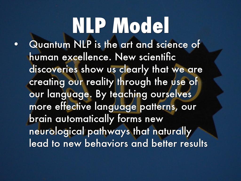 Quantum NLP is the art and science of human excellence. New scientific discoveries show us clearly that we are creating our reality through the use of our language. By teaching ourselves more effective language patterns, our brain automatically forms new neurological pathways that naturally lead to new behaviors and better results