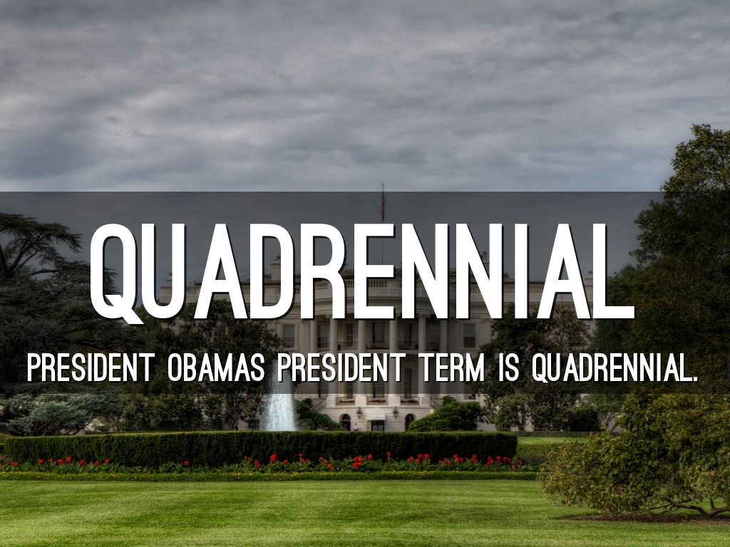 PRESIDENT OBAMAS PRESIDENT TERM IS QUADRENNIAL.