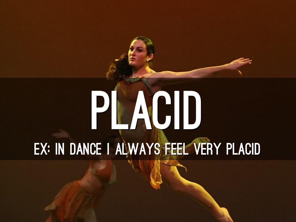 EX: IN DANCE I ALWAYS FEEL VERY PLACID
