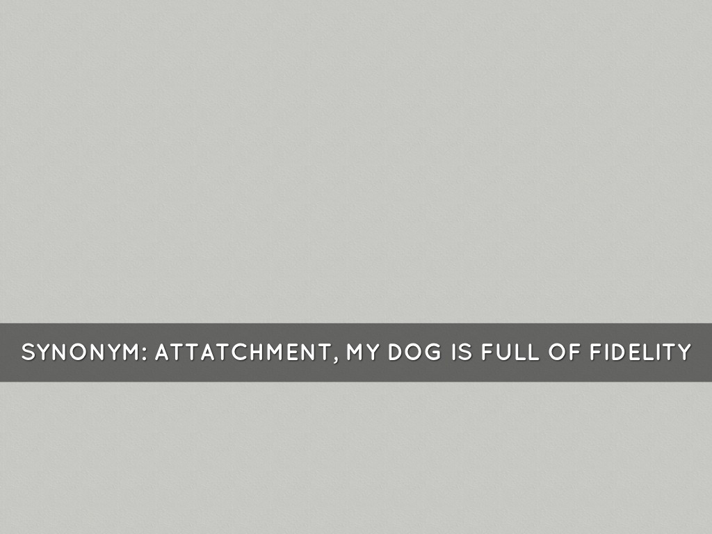 SYNONYM: ATTATCHMENT, MY DOG IS FULL OF FIDELITY