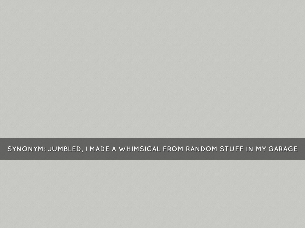 SYNONYM: JUMBLED, I MADE A WHIMSICAL FROM RANDOM STUFF IN MY GARAGE