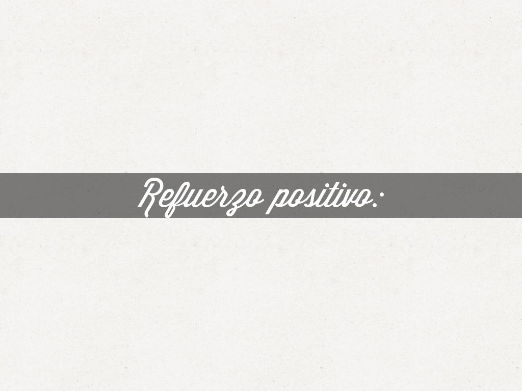 Es el estímulo, premio o consecuencia agradable que se brinda para aumentar la respuesta o conducta deseada para que se repita.