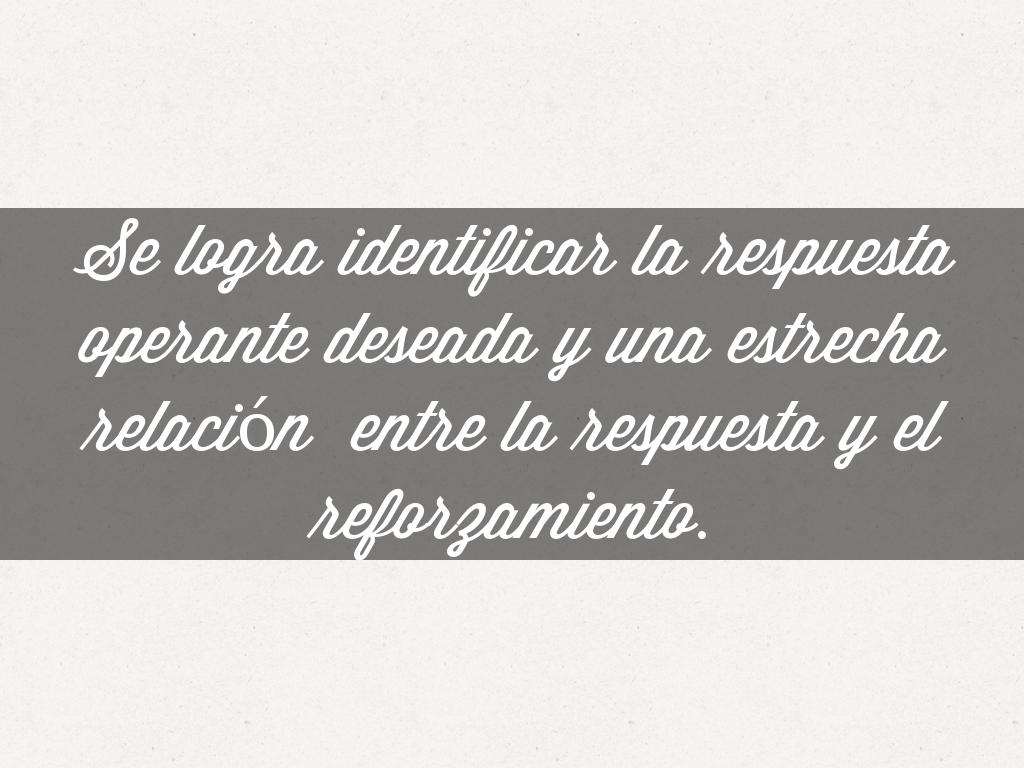 Se logra identificar la respuesta operante deseada y una estrecha relación entre la respuesta y el reforzamiento.