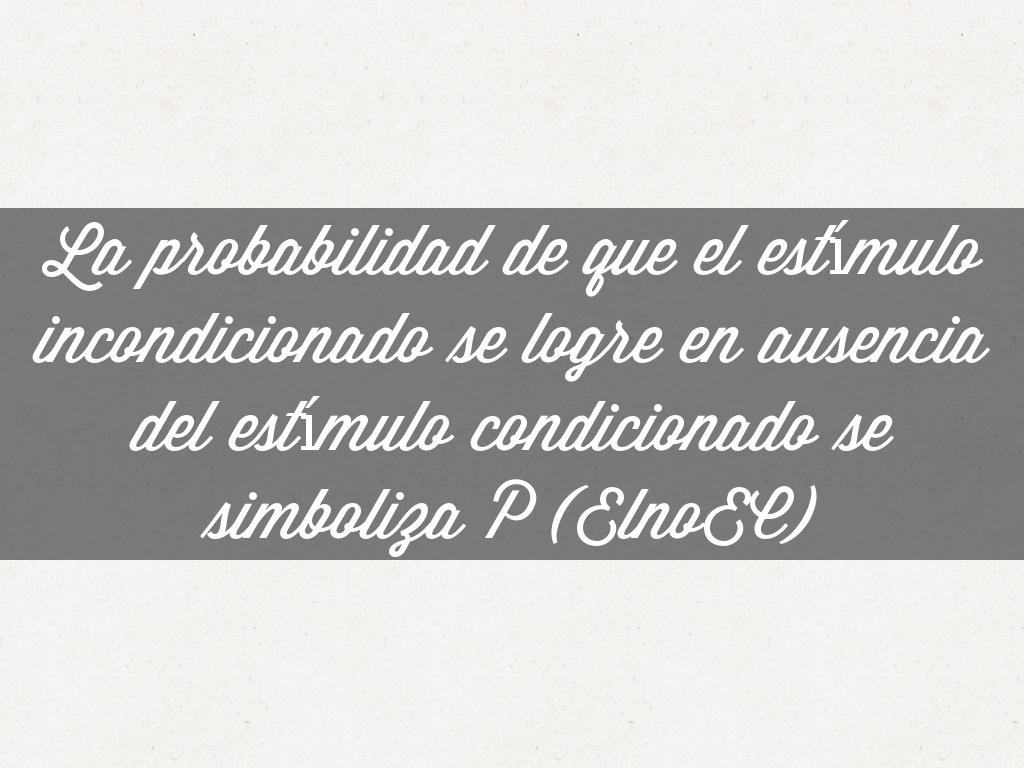 La probabilidad de que el estímulo incondicionado se logre en ausencia del estímulo condicionado se simboliza P (ElnoEC)