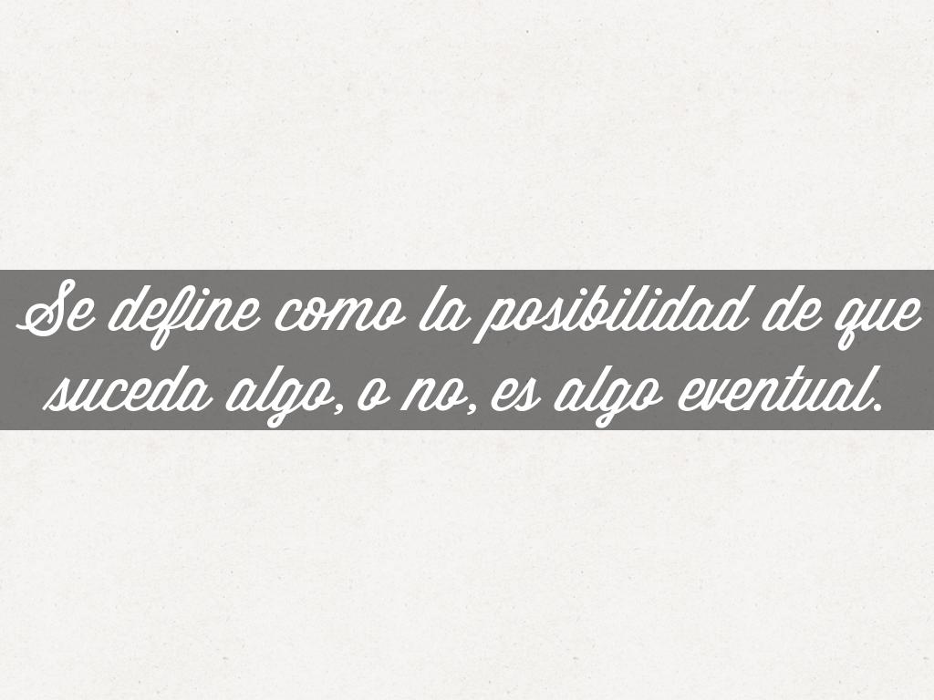 Se define como la posibilidad de que suceda algo, o no, es algo eventual.