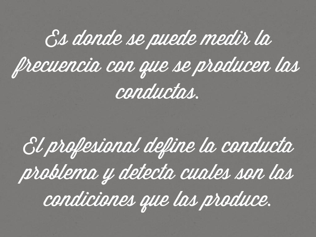 El profesional define la conducta problema y detecta cuales son las condiciones que las produce.