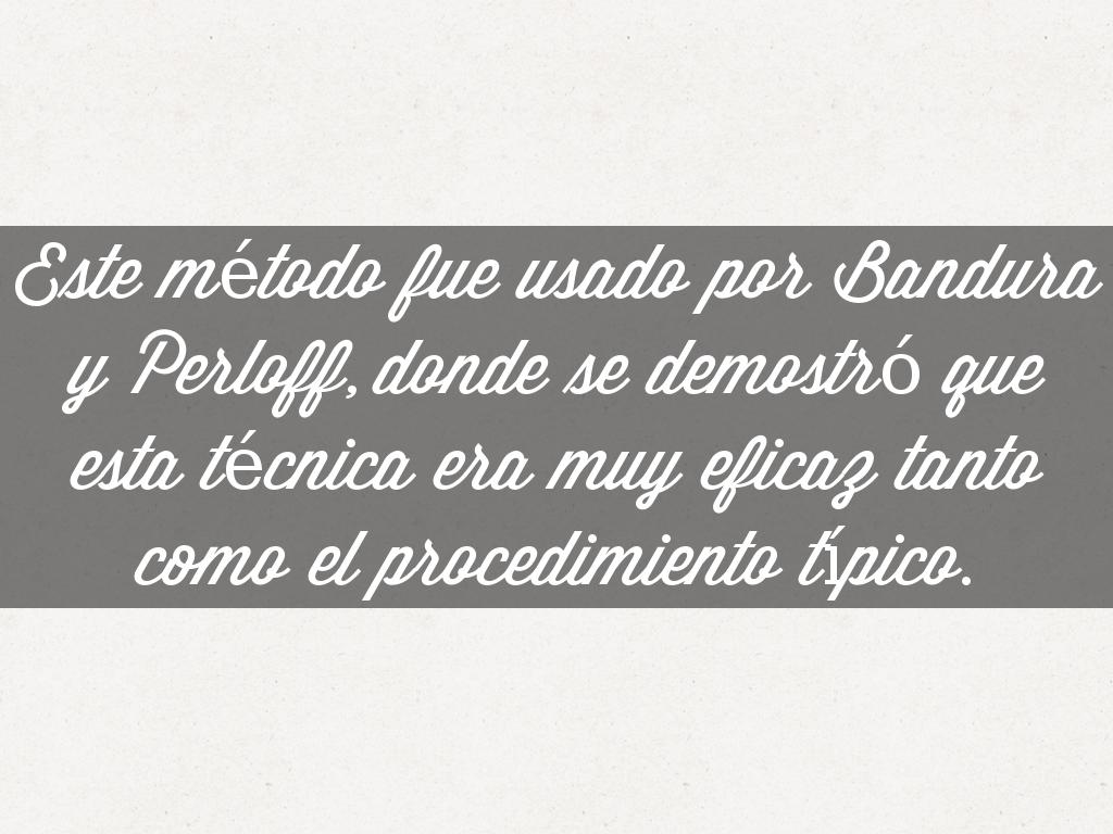 Este método fue usado por Bandura y Perloff, donde se demostró que esta técnica era muy eficaz tanto como el procedimiento típico.