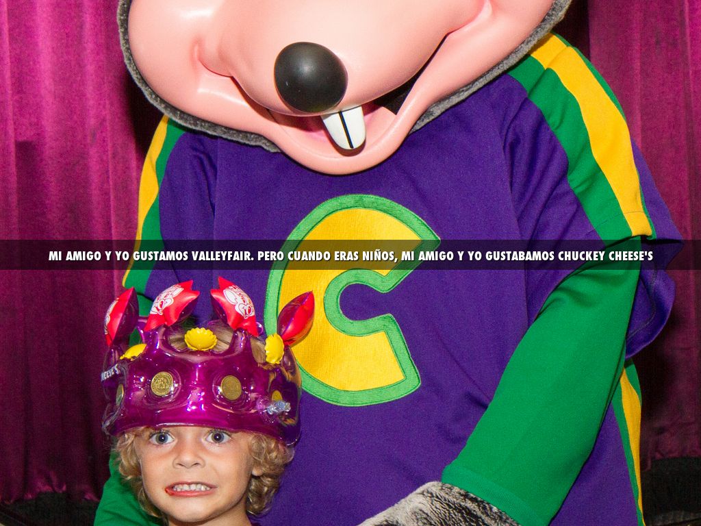 MI AMIGO Y YO GUSTAMOS VALLEYFAIR. PERO CUANDO ERAS NIÑOS, MI AMIGO Y YO GUSTABAMOS CHUCKEY CHEESE'S
