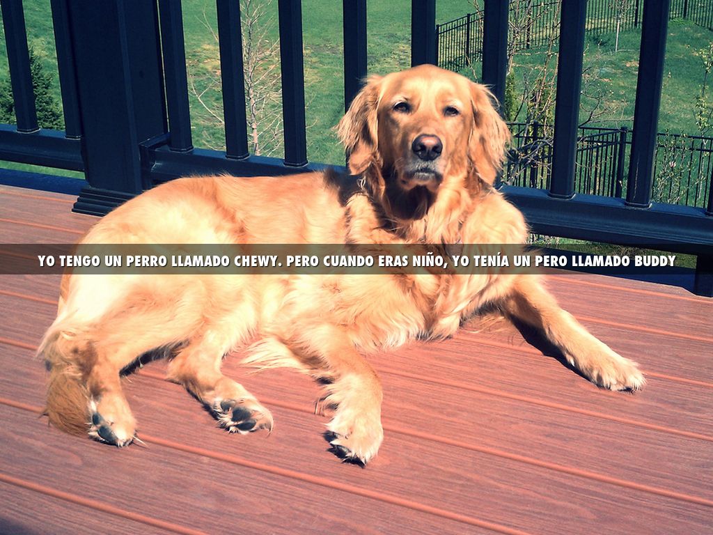 YO TENGO UN PERRO LLAMADO CHEWY. PERO CUANDO ERAS NIÑO, YO TENÍA UN PERO LLAMADO BUDDY