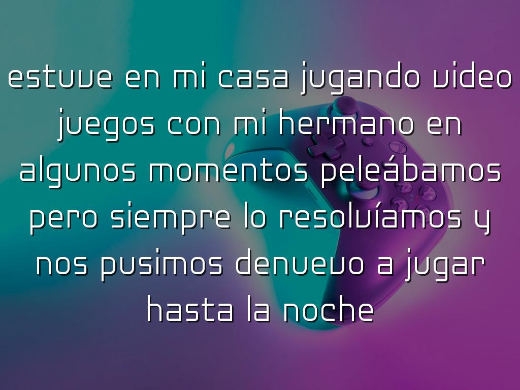 estuve en mi casa jugando video juegos con mi hermano en algunos momentos peleábamos pero siempre lo resolvíamos y nos pusimos denuevo a jugar hasta la noche