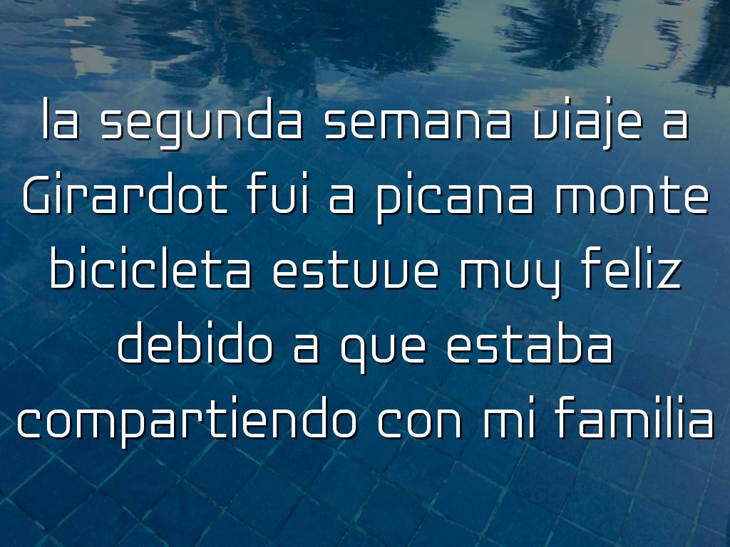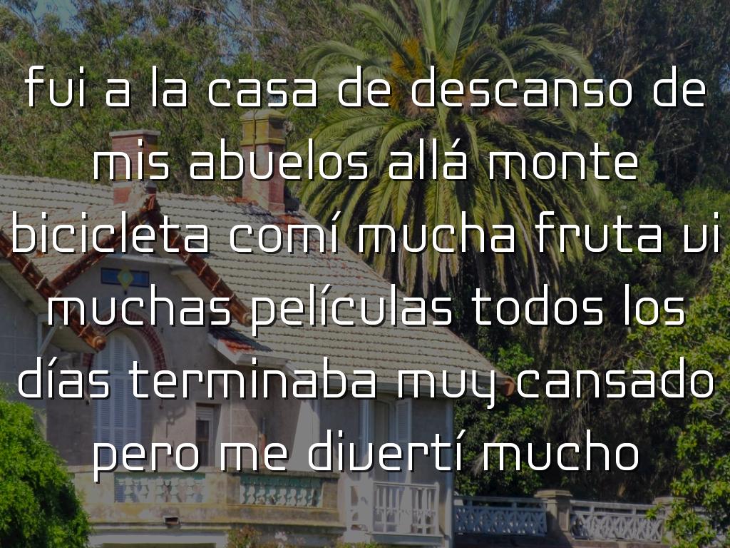 fui a la casa de descanso de mis abuelos allá monte bicicleta comí mucha fruta vi muchas películas todos los días terminaba muy cansado pero me divertí mucho