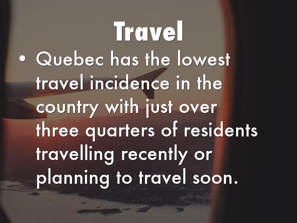 Quebec has the lowest travel incidence in the country with just over three quarters of residents travelling recently or planning to travel soon.