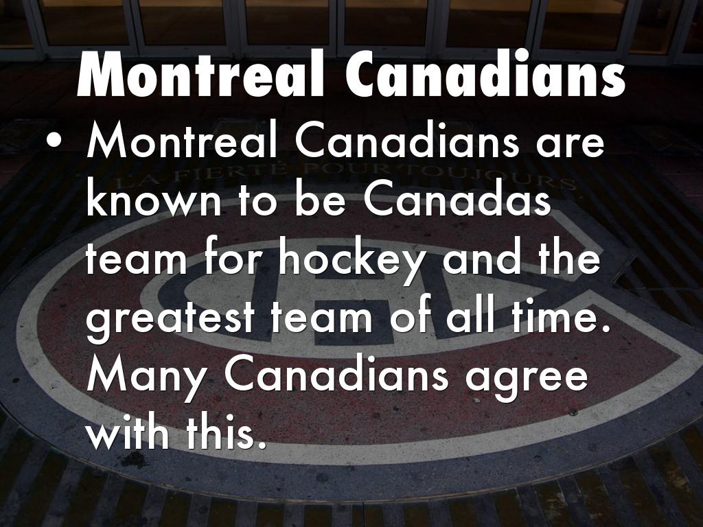 Montreal Canadians are known to be Canadas team for hockey and the greatest team of all time. Many Canadians agree with this.