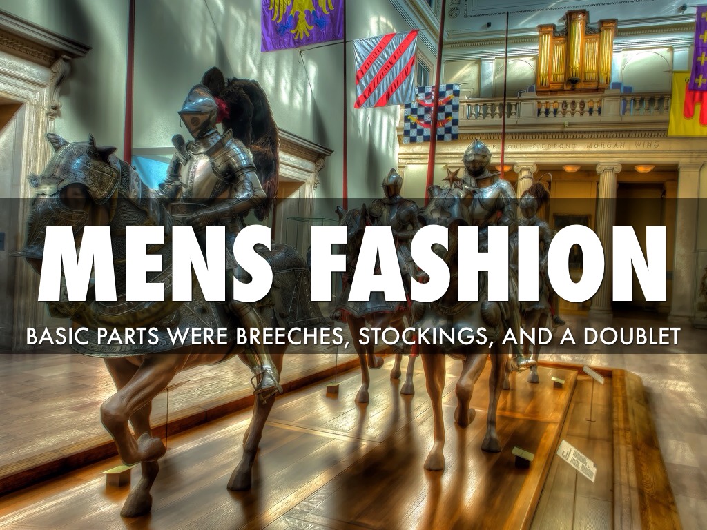 BASIC PARTS WERE BREECHES, STOCKINGS, AND A DOUBLET