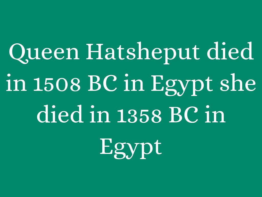 Queen Hatsheput died in 1508 BC in Egypt she died in 1358 BC in Egypt