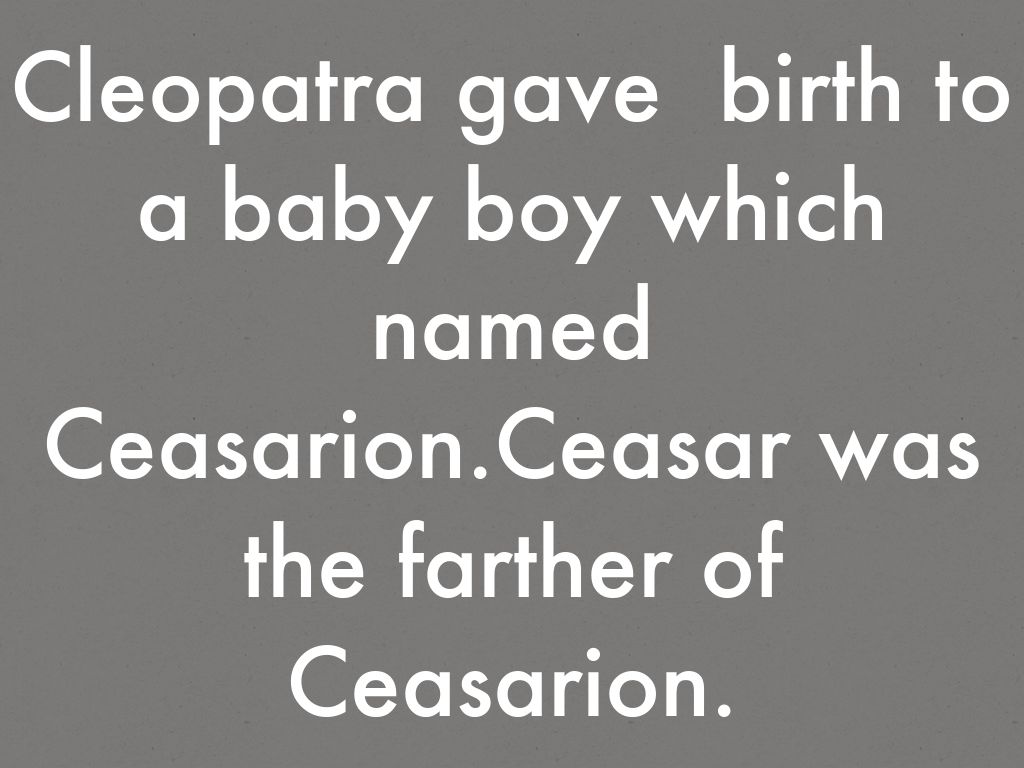 Cleopatra gave birth to a baby boy which named Ceasarion.Ceasar was the farther of Ceasarion.