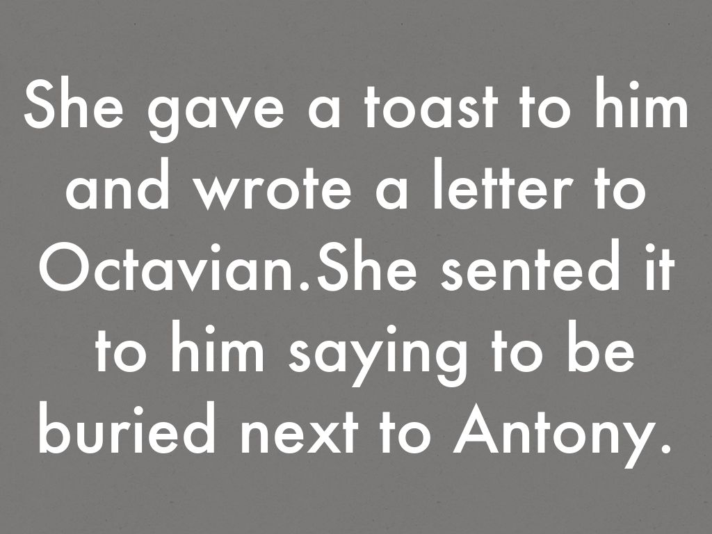 She gave a toast to him and wrote a letter to Octavian.She sented it to him saying to be buried next to Antony.