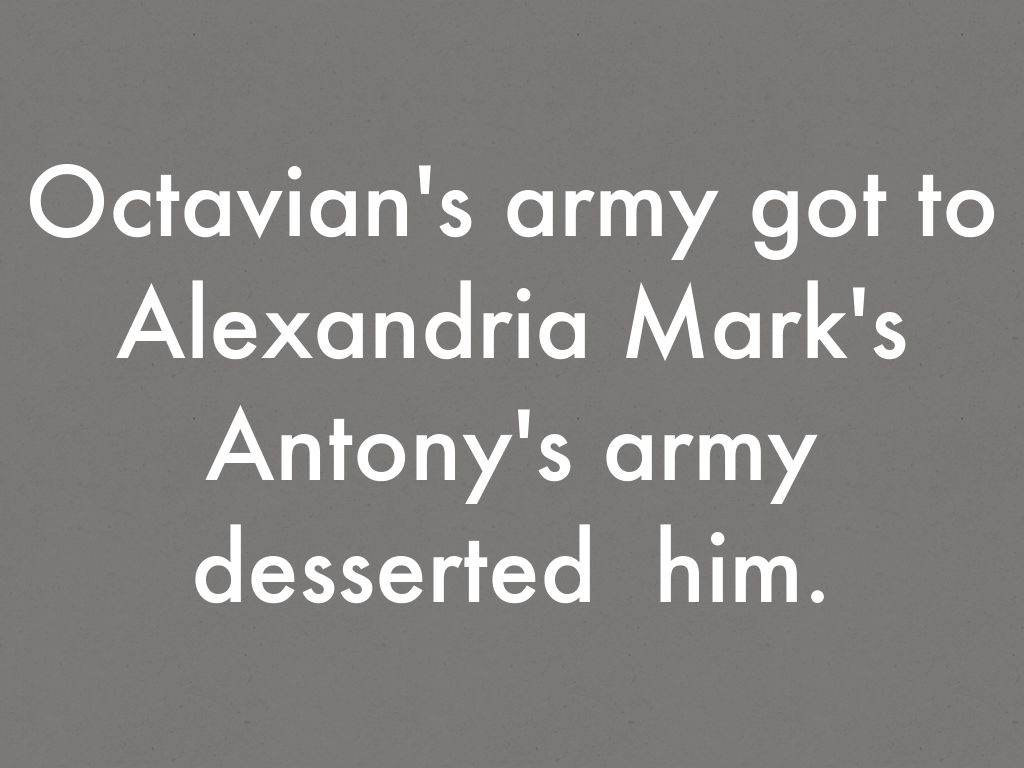 Octavian's army got to Alexandria Mark's Antony's army desserted him.