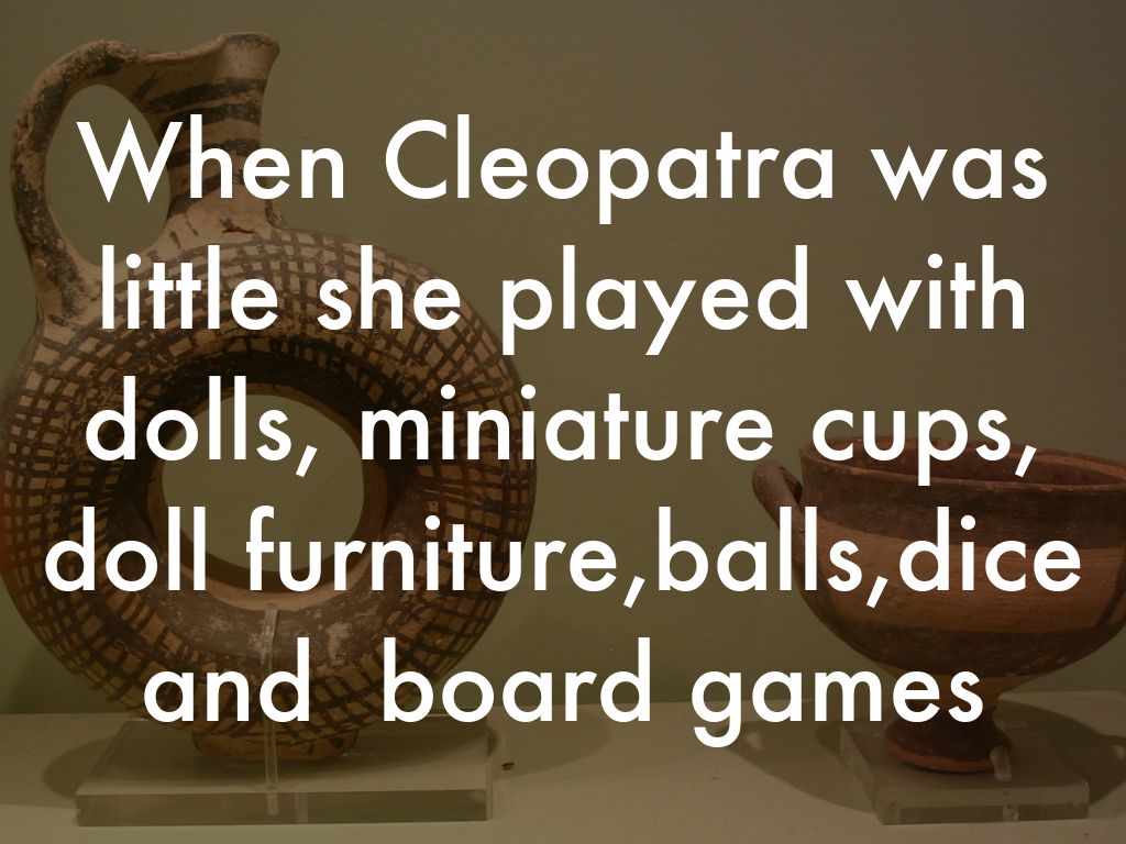 When Cleopatra was little she played with dolls, miniature cups, doll furniture,balls,dice and board games