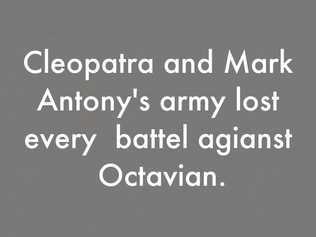 Cleopatra and Mark Antony's army lost every battel agianst Octavian.