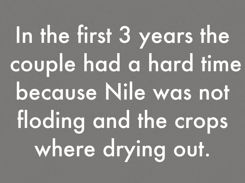 In the first 3 years the couple had a hard time because Nile was not floding and the crops where drying out.
