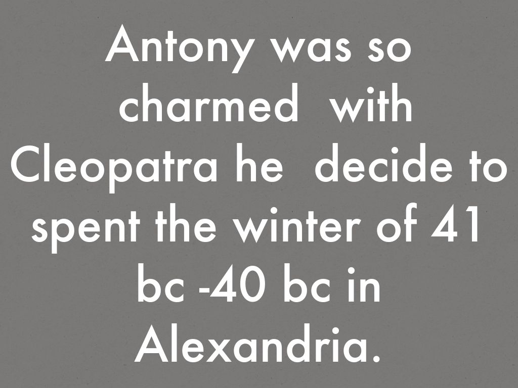 Antony was so charmed with Cleopatra he decide to spent the winter of 41 bc -40 bc in Alexandria.