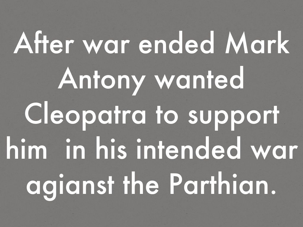 After war ended Mark Antony wanted Cleopatra to support him in his intended war agianst the Parthian.
